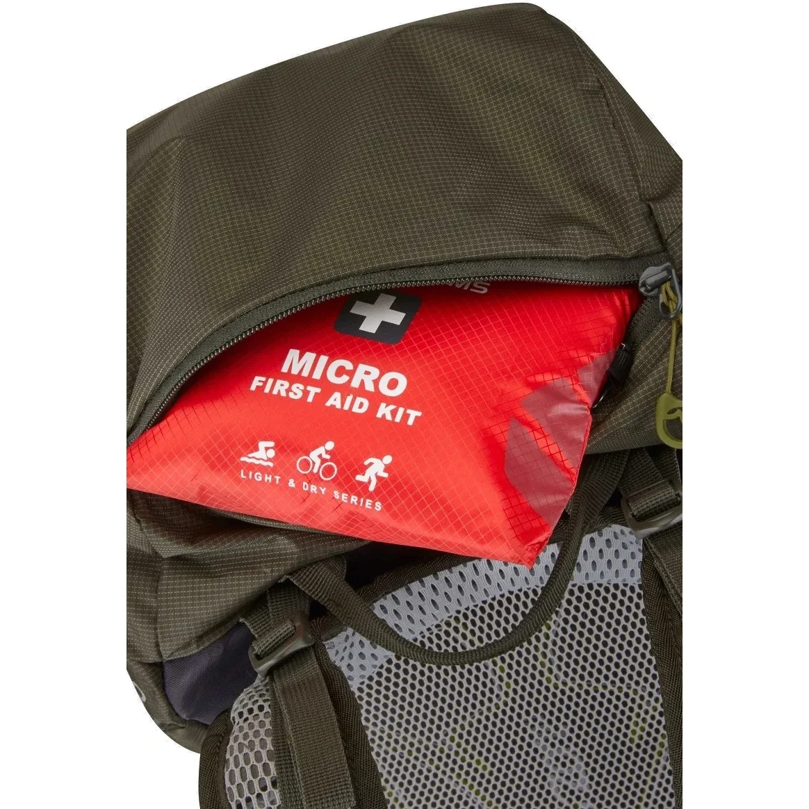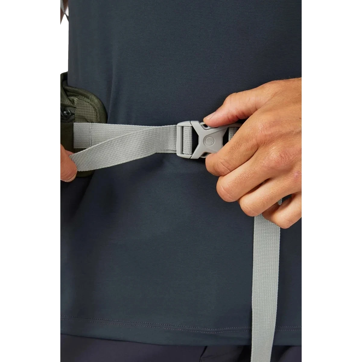 De rugzak is ontworpen voor een 3-liter drinkblaas en heeft zijvakken van gaas voor waterflessen, zodat je onderweg gehydrateerd kunt blijven. De ritsvakken in de heupgordel houden snacks of een kompas bij de hand, en het voorvak is de perfecte plek voor een uitklapbare kaart. Een ander handig vak bevindt zich in de klep van de rugzak en er is ook een veilig binnenvak voor waardevolle spullen. Wandelstokken kunnen worden bevestigd aan de TipGripper-ogen en een beschermende regenhoes kan snel worden omgedaan als het weer omslaat.
